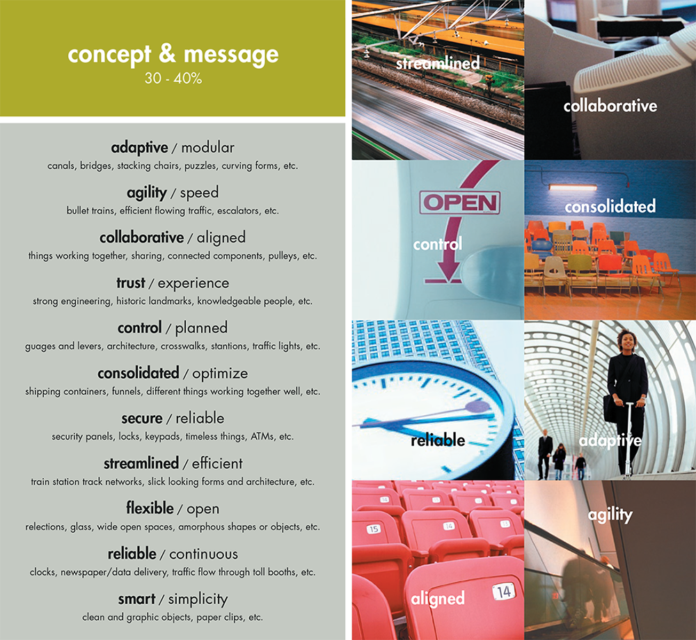 Project Objective: Create a pool of new photography for the HP image library relevant to ESG and HPS positioning and messaging (adaptive, agility, collaborative, trust). Develop a comprehensive messaging/imaging framework that informs photography strategy and budget. Images should concentrate heavily on mid to large scale business technology customers and environments, and reinforce HP's brand values.