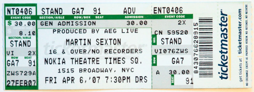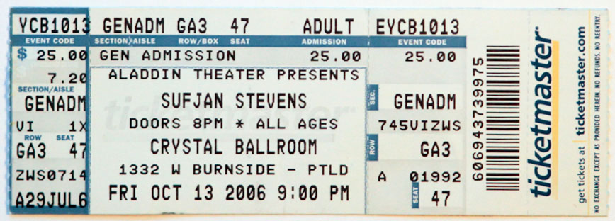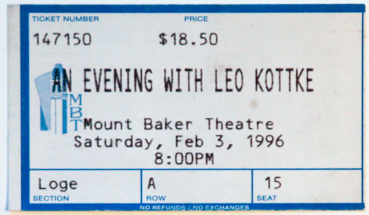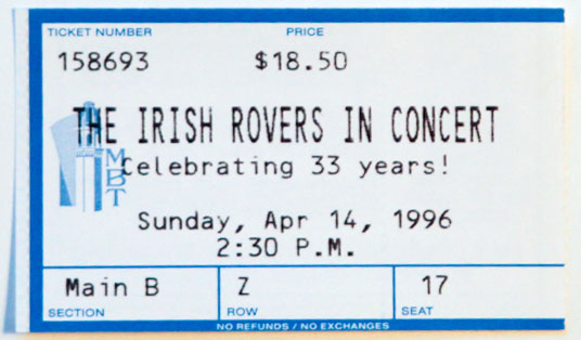 < Back to Ticket Stub index page Tickets are loosely organized oldest to most recent. Click on each for larger image.